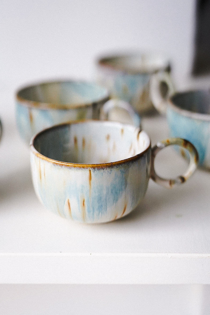 Born on the potter’s wheel, each Nami cup is shaped slowly and intentionally. Crafted from durable stoneware and glazed in flowing layers of classic Marinski tones, these cups embody both delicacy and depth. Perfect for a cozy cappuccino or a cup of your favourite tea.