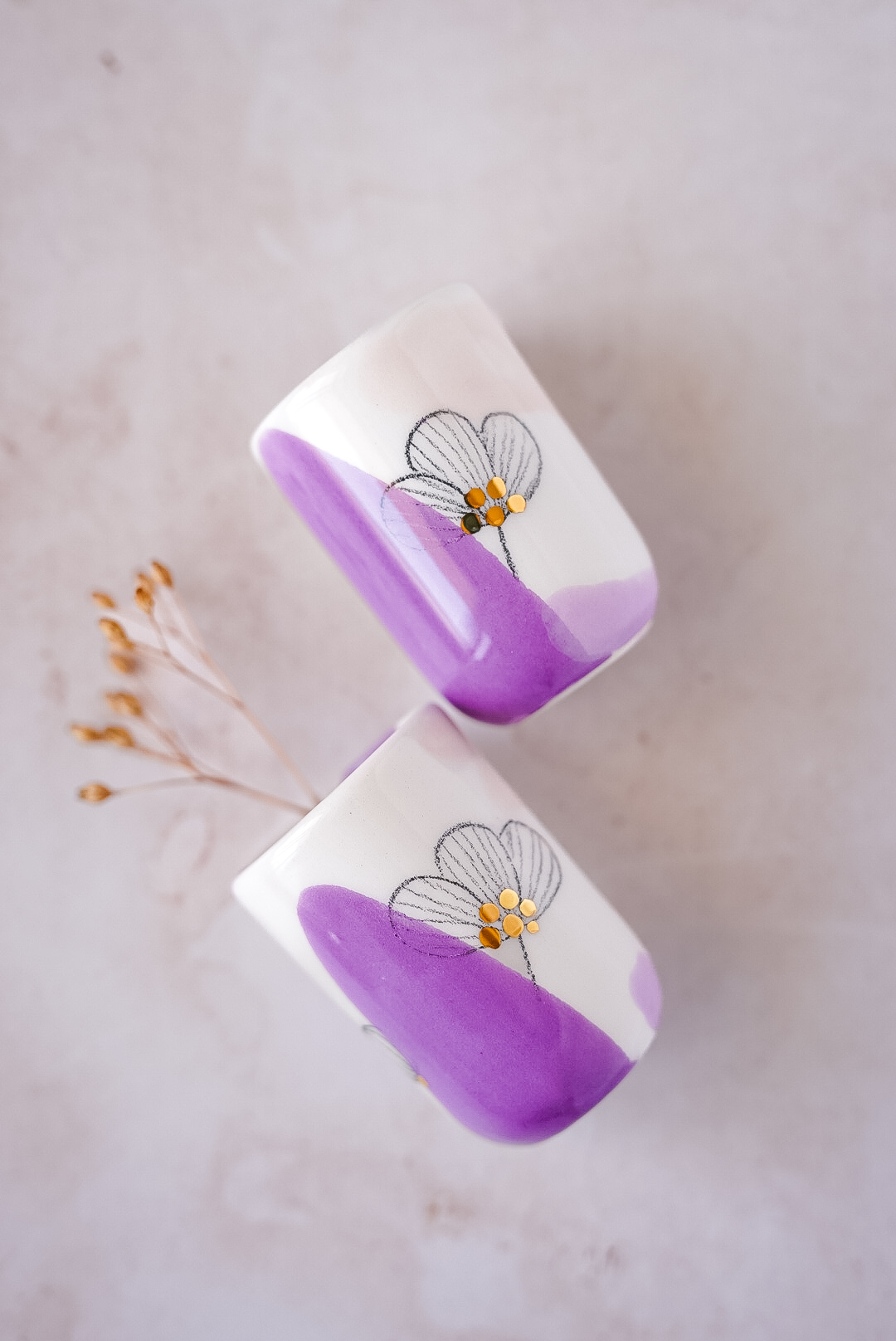 The pastel colours, the floral motifs, the hazy feel… There is something about the airiness of an underglaze pen in fusion with breezy watercolored landscapes and a 24 ct golden sparkle that just makes me feel good. With this cup in hand, I am ready to plan my next nature adventure. Come along!